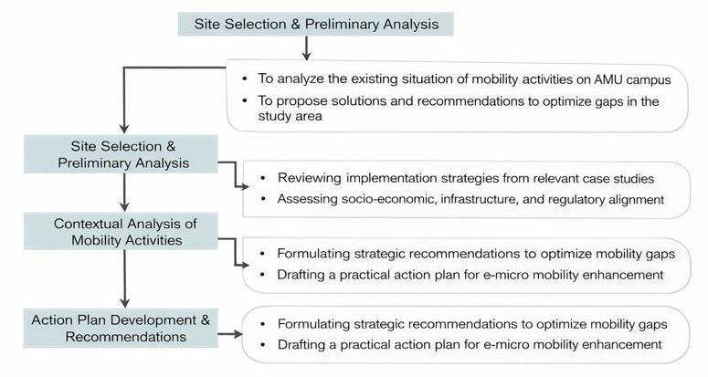 2. Tostudythespatialcharacteristics,circulationpatterns, and campus movement behaviour in institutional environments to understand the potential for integratinge-micromobility.