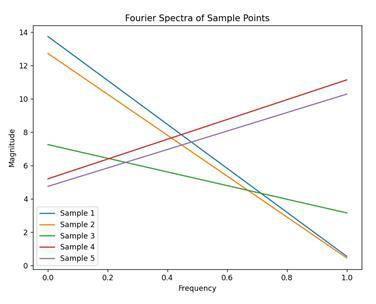 Figure 4 illustrates the Fourier spectra of selected sample points, showing how distinct frequency patterns emerge acrossdatainstancesanddemonstratingthediscriminative capacity of the Fourier transform in separating latent structures.