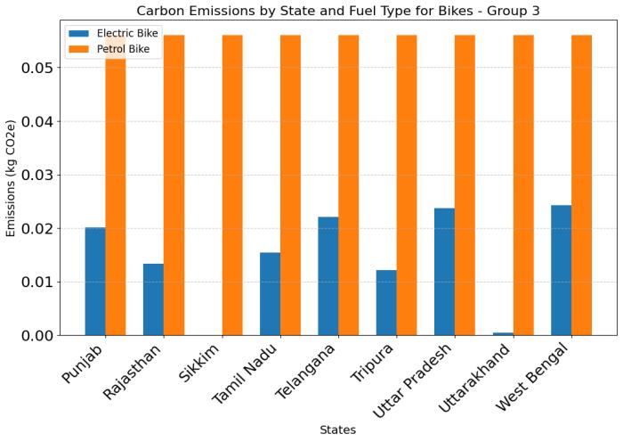 Petrol Bikes: Emissions remained constant at ~0.05kgCO₂e/kmacrossstates.