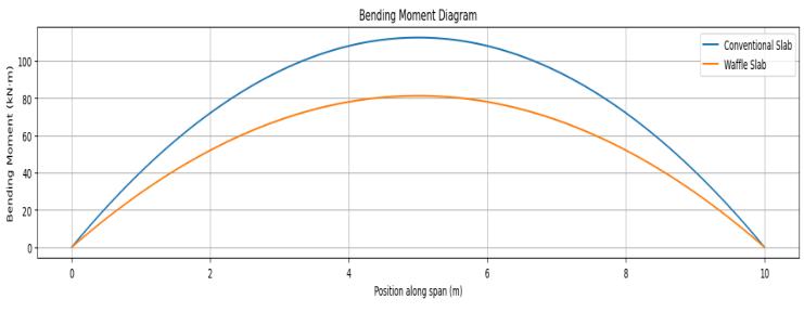 This research by Anjali Mishra and Anurag Bajpai [10] examine the investigation of waffle slabs from various computational and theoretical approaches. This study is basedonassessmentofstructuralperformance.Atwo-way joistslabstructuremadeupofintersectingribsatregular gridpoints, madetocreate column-freespaces. Thestudy aims to compare analysis methods such as Rankine Grashoff'smethod(asanapproximate),Timoshenko'splate theory(asanexact),andthestiffnessapproachwithETABS 2018software.Froma comparison of reinforcedconcrete slabsofdifferingsizes 12×18m,18×24m,and24×30m the work studies significant flexural parameters, namely bendingmoments(Mx&My),shearforces(Qx&Qy),and mid-spandeflections.Theseresearchersexpandonprevious research that identifies the benefits of waffle slabs in minimizedmaterialcost.Theyalsoshowedhowwaffleslab enhancedstructuralefficiency,andbetterloadtransfer.Past studies have proven that waffle slabs provide superior structural behavior in large-span structures through minimized deflection at the same strength. The present investigation further enhances the understanding of the behaviorofwaffleslabsinthelightofIS4562000.