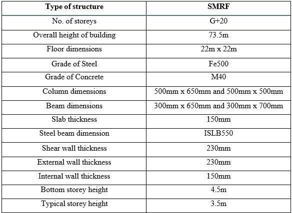 Thesystemdevelopmentphaseofthisdissertationproject encompassesthedesign,implementation,andevaluationofa computationalframeworkfortheseismicanalysisofaG+20 RCC framed structure and Steel Beam-Concrete Column Hybrid Frame Structure, with a particular focus on the replacementofRCCbeamswithsteelbeams.Thisphaseis critical inachieving theoverall researchobjectives, which aretoassesstheseismicperformance,structuralintegrity, andcomparativeadvantagesofthesetwostructuralsystems. Forseismicanalysisofhigh-risestructure,thetwomethods are used which are response spectrum method and time historymethodandwhicharelineardynamicmethods.In high-rise structures, time history analysis should be performedbecauseitgivesthemostaccurateresultsthan the response spectrum method. The data required for analysisofstructureandmodelsforthisstudyareexplained below.