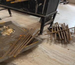 Before casting, the treated bamboo strips were precisely positionedinsidethemold.Inordertostopanymovement duringthecastingprocess,stiffconcretewasthenpositioned andcompactedaroundthestrips.