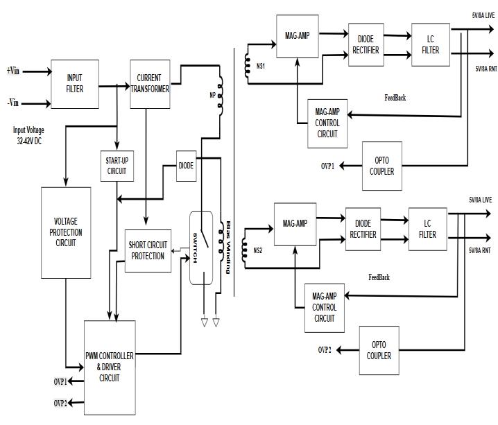 i) Input Protection and Filtering ii) Startup Circuit iii) Voltage Protection Circuit iv) PWM Controller and Gate Driverv)MagneticAmplifier(MagAmp)vi)Optocoupler.