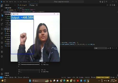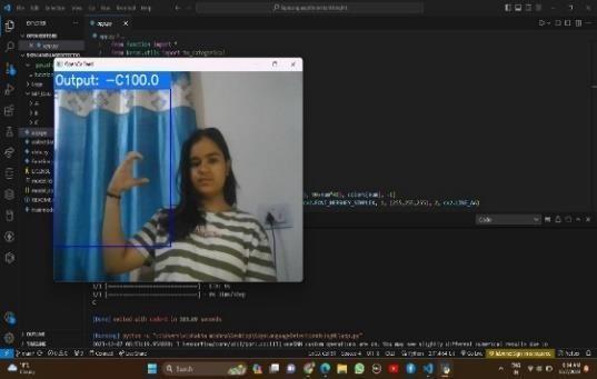 InadditiontotheIndianSignLanguagegestures,thesystemwastestedon24Englishalphabethandgestures.Themodel successfullyrecognized and classified these gestures, converting them into corresponding text or speech output in realtime.