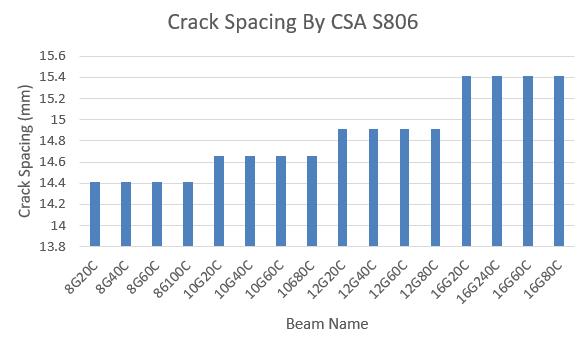 Figure9showsthecrackspacingcalculatedusingCSAS806 code,whichindicatesthatcrackspacingincreaseswithan increaseinthediameterofthebar[10]