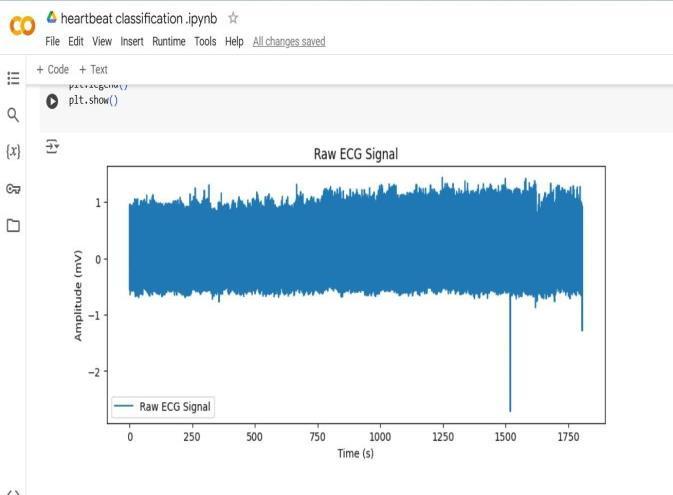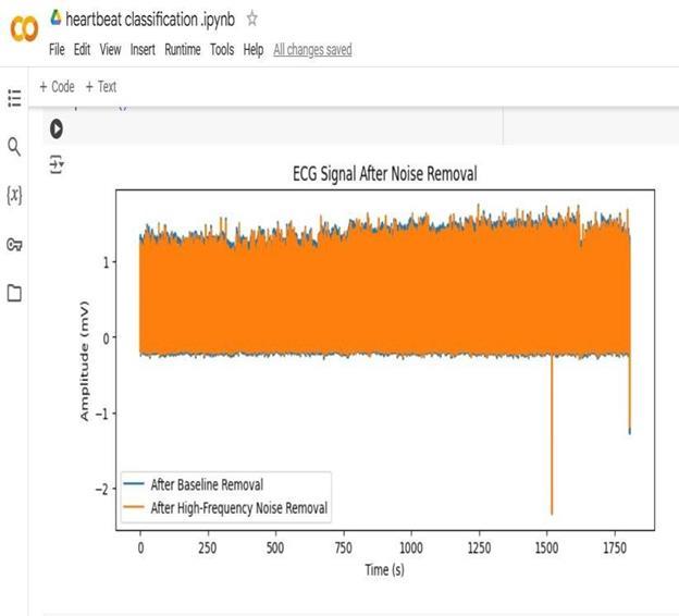 These preprocessing steps result in a cleaned and structured ECG dataset, ready for feature extraction and classification. Fig 5 illustrates the ECG signal after successfulnoiseremoval.