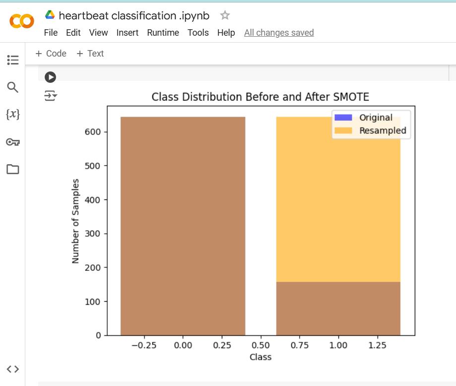 Fig 6 illustrates the class distribution before and after applying SMOTE, demonstrating the improved balance acrossheartbeatcategories.
