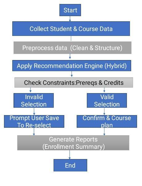 Therefore, there is a need for a Python-based intelligent system that recommends suitable courses, validates prerequisites,andstoresacademicrecordsinacentralized database.