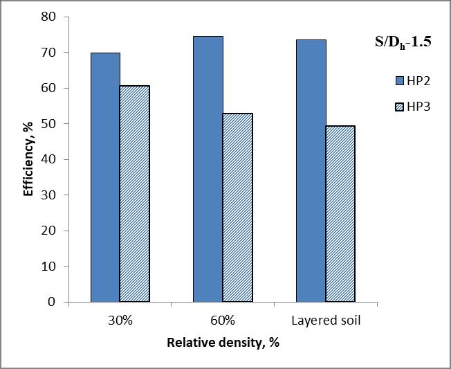 From the other hand, it can be also noticed that the efficiency of multi-helix piles in medium dense sand and layeredsoilfoundtohavemarginaldifference.