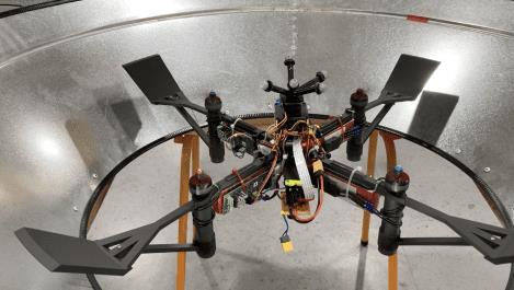 Initial tests with the Drone-on-cone setup showed oscillationsandinstabilityduetoaerodynamicinterference between drone and landing cones. Smoke tests confirmed airflowdisruptions,promptingaswitchtotheDrone-in-cone design.