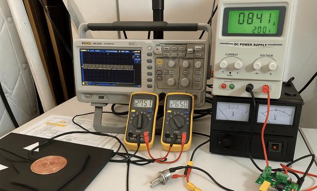 Extensive tests confirmed the LCC-S topology as the most efficient,achievingupto92.6%efficiencyat190kHzwhile charging a 4S LiPo battery. Testing used actual drone components,withplanarcoilsintegratedintorotorendsto validatetheper-armarchitecture.Coilplacementinpropeller guards caused yaw sensitivity, which affects charging alignment.Analternativebase-mountedcoilcouldsolvethis but was not explored further. Performance data showed stable44Wpowerdeliveryat2.6Aconstantcurrent.