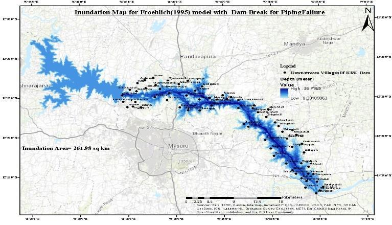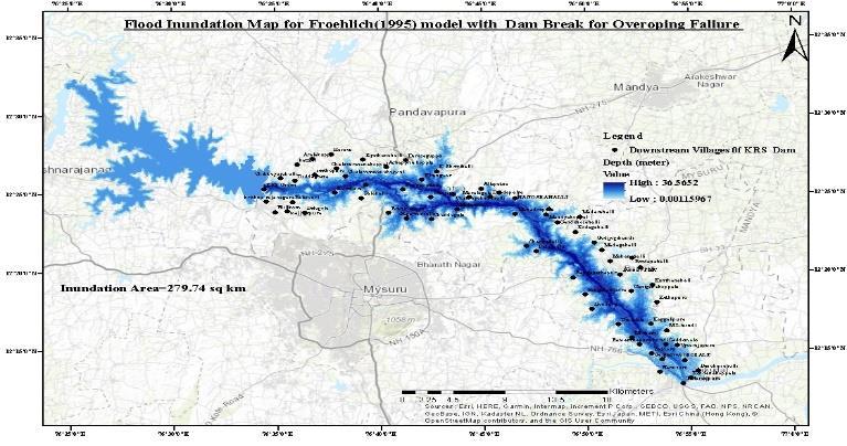 From the Flood inundation map that are prepared for the KRSdamwithdambreakscenarioshowthat