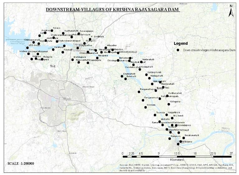 Thevillageswhicharemajorlyaffectedbythemonthe right of the bank KRS garden, Naguvanhalli, Melepura, Chandagalu, Mahadevapura, Channahalli, Bidarhalli, Ranganathapur, Honnuru, Muthathi, Yeddore, Gargeshwar, T narasipura , Benakanahalli, Balamuri, Karekura,Brahmapura,Chandgala,Naguvalli