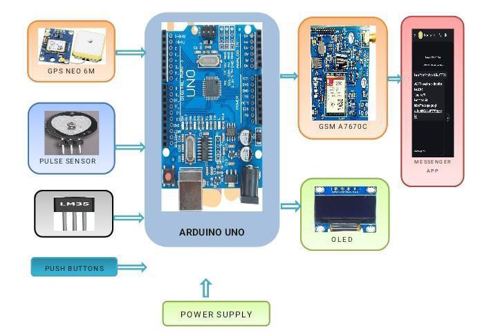 GSMModule(SIM800/SIM900):Sendsemergencyalerts,healthreadings,andGPSlocationtothecontrolroomvia SMS.