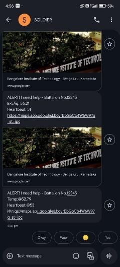 The system continuously checks the soldier’s heart rate and temperature against predefined safe limits. If any value becomesabnormalorsuddenlyfluctuates,thesystemidentifiesitasanemergency.Thealertmodeisalsoactivatedifthe soldierpressestheSOSbutton.