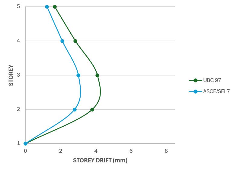 Fromchart-1andchart–2,thepeakstoreydriftobtained usingASCE/SEI7is26%lowerthanthatobtainedusingUBC 97.