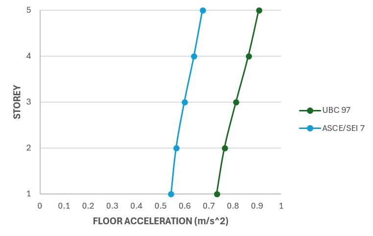 Thesedifferencesshowthatvariationsinseismicparameters betweentheUBC97andASCE/SEI7codes,leadtodifferent storey displacements, floor accelerations, fundamental periods,andbasereactions.