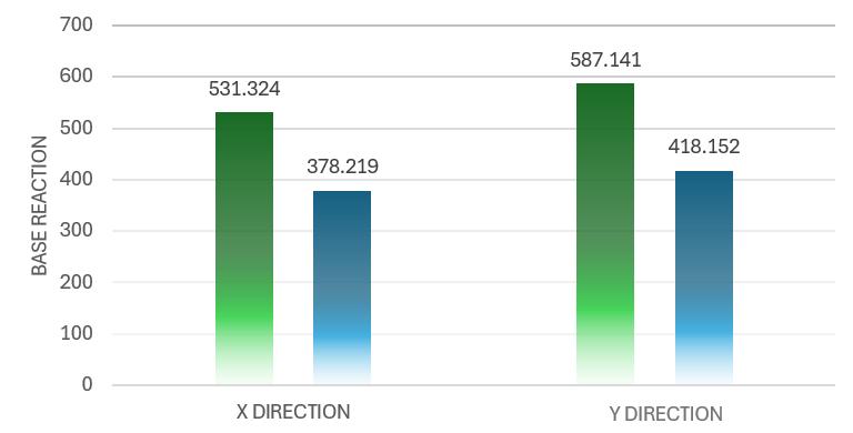 Fromchart–6,thegreenbarisforUBC97andthebluebaris for ASCE/SEI 7. ASCE/SEI 7 resulted in a lower calculated baseshearvaluecomparedtoUBC97.Thisrepresentsa28% reduction.