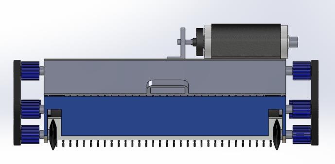 ï‚· Collection Mechanism: The debris is pushed onto a textured inclined surface onto its way to the rear bin throughthehelpofthegravityandforwardmovements ofthewheels.