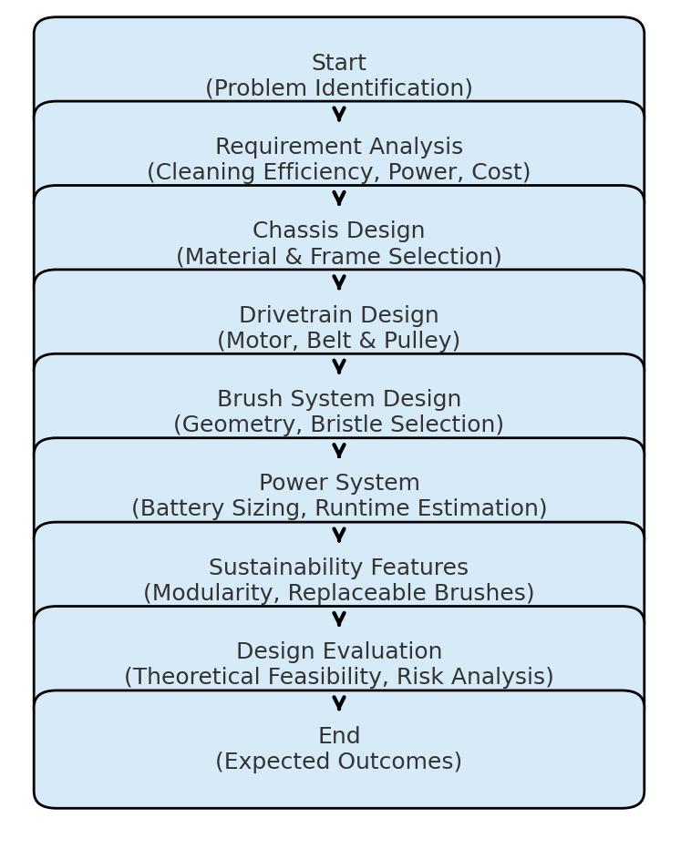 Thefocusofthisstudyisonengineeringdesignandanalysis, including drivetrain calculations, torque and power estimation,energyconsumptionanalysis,andfiniteelement simulations for structural integrity and brush–floor interaction. The conceptual framework aims to achieve a balance of cost-effectiveness, energy efficiency, durability, andsustainability,makingitapracticalalternativeforSMEs, institutions,andpublicspaces.