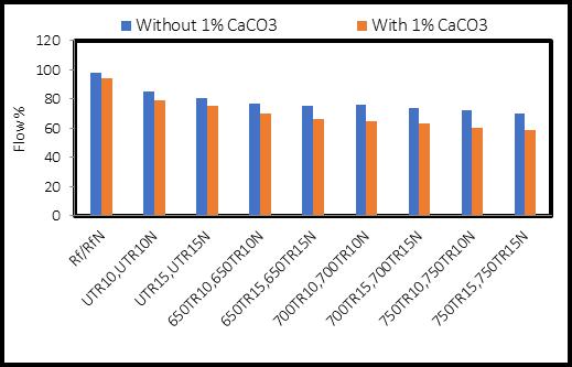 Fig-2:FlowabilityofuntreatedandtreatedRCP,withand without1%nanoCaCO3