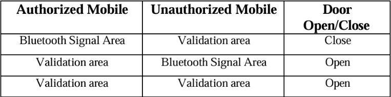 Theuserofaccessislocatedonthevalidationareaandthe user of no access is located on the Bluetooth signal area. Thereisnoactionfromthesystemiftheuserislocatedon the Bluetooth signal area, yet the system can detect an activeBluetoothsoftware,matchtheidentity,andconnect communicationfortheuserofaccess.Oncondition2figure, it is identified that the user of access is located on the validation area, so the system gives command to the door locktoopenautomatically.