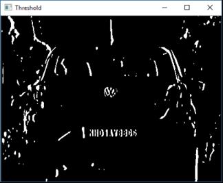 3. Thresholding of frame: The image will be converted to blackandwhiteimageinthisThresholdingprocess.Itwill reduce the number of a range of the color scale from (0255) to (0-1)[11][13]. Finally, the subtracted grayscale image is converted into a binary image. Firstly the global threshold level is calculated by using Otsu's method[6] and after this according to the calculated threshold value; the subtracted grayscale image is converted into a black andwhiteimage.Figure4showsabinarizedimage.