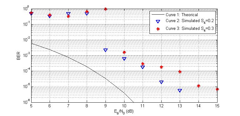 Fig -2:Curvesofthebiterrorrateofthedemodulator submittedtoscintillationintensitiesS4=0.2andS4=0.3.