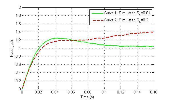 Fig -3:Transitoryresponseoftheloopon ̂ ,outputofthe discrete-timefilterinFig.3in[3],foraphasesteptaking intoaccounteffectsofscintillationforS4=0.01andS4=0.2.
