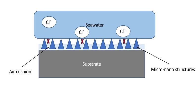 Scientistsandresearchershavebeenimmenselyworkingonthesuperhydrophobiccoatingduetotheincreasingdemandin differentsectors.Mostoftheresearchesarebasedonthecorrosionresistancecoatingbecauseitisoneofthemajorproperties needed by the engineering materials [6]. This coating is being used as a protective coating for the exposed materials in maritime industries as well as in the construction sector [18]. The resistance of corrosive agents under the sea by these coatingshaveshowninfig3.15.Theself-cleaningpropertyoftheSHPcoatingismainlyappliedinsolarpanels,mirrors,and lenses.Thisabilityishighlyexploitedbytheagricultureanddefencesectors.ThemajoradvantageofSHPcoatingisthatitcan be applied as a transparent coating especially in glass substrates, which is mostly used for architectural purposes. Antireflective superhydrophobic can be deposited on the covering of solar cell system and is also employed for automobile windowsandlensesetc.SHPcoatingpossesstheanti-icingpotential ofslowingdowntheadhesionofsnowor iceonthe surfacewhichisbeingutilizedbyairplanes,highways,powerlines,ships,etc.Theparamountpropertyofthiskind ofSHP