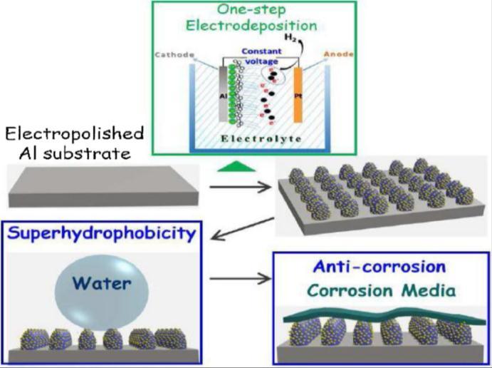 YanLiuet.al.[21]successfullyfabricatedSHConacopperplateviaelectrochemicaldeposition.Theyhadtaken2copperfor theanodeandcathode.Theelectrolyticmediumusedforthisprocesswasamixtureofceriumchloride,mystericacid,and ethanol.ZengguoBaiandBinZhang[22]havepreparedanovelreducedgrapheneoxiderGO/Nicompositecoatingonstainless steel through electrodeposition. They deposited a thin layer of Ni on the substrate before the application of the rGO/Ni compositelayer.TheelectrolytetheyusedasthemediumwaspreparedbyaddingNiCl2.6H2O,orthoboricacid,potassium chloride,sodiumdodecylbenzenesulfonate,andrGO.ThesuperhydrophobiccoatingsweregeneratedbythedepositionofNi onthestainless-steelsubstratefollowedbythedepositionofrGO/Nicompositemix.