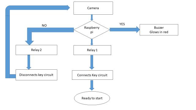 Relaysareusedwhereitisnecessarytocontrolacircuitby anindependentlow-powersignal,orwhereseveralcircuits mustbecontrolledbyonesignal.Relayswerefirstusedin long-distancetelegraphcircuits as signal repeaters: they refreshthesignalcominginfromonecircuitbytransmitting it on another circuit. Relays were used extensively in telephoneexchangesandearlycomputerstoperformlogical operations. Here relay is used in such a way that, If the condition is satisfied by raspberry pi then it will send a signaltotherelaytomakecontacttothekeycircuitthereby it allows to switch on the vehicle If the condition is not satisfiedrelaywillbreakcontactsousercannotswitchon hisvehicleunlesstheconditionisfulfilled.