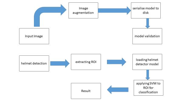 Theinputimagewillbesensedanditwillbeaugmentedand the augmented image will be saved to the disk. The next processwillbeimagevalidation.Aftervalidatingtheimage thesoftwarewill check for helmet detection byextracting the ROI of the image then the load detector model will analyze the image and the result will be sent to the connectedparts.