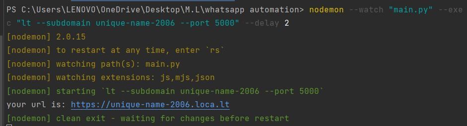 delay 2: which helps us to the gap between the server restarting. If we don’t give any gap between the server restarting the local tunnel assume that the subdomain is already taken and will assign some random subdomain which is not what we want. In this, I gave 2 seconds gap betweentheserverrestarting