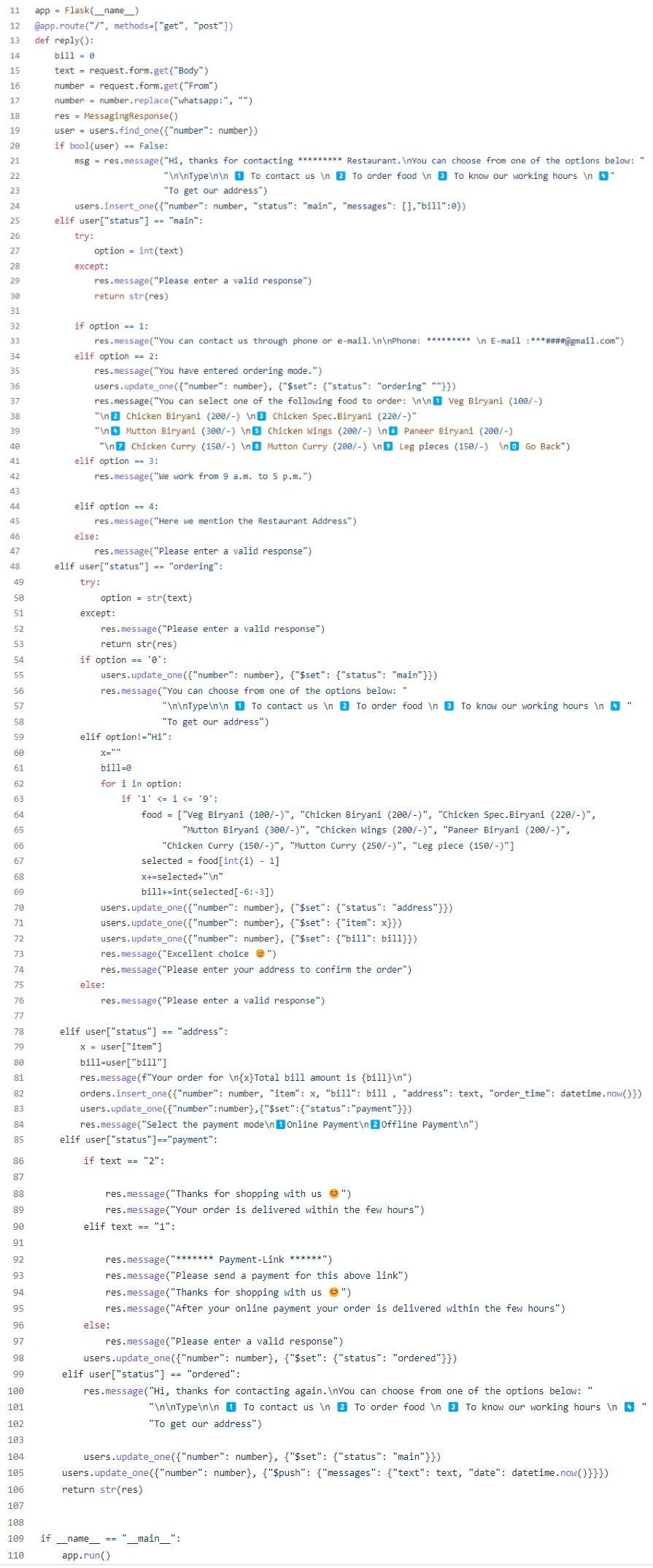 ThisisthesourcecodetobuildaWhatsAppAutomationBot forfooddelivery.