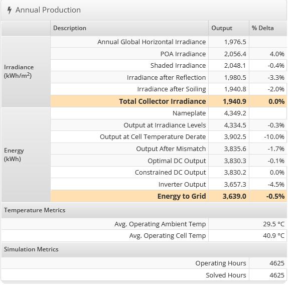 The software has also many options like; we can check the tilting angle of PV panels. It specified tilting angle of panels as ‘10’ in this particular simulationstudy