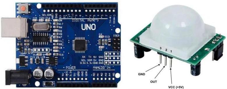 SensorsFigure5.1ArduinoUNOFigure5.2PIRsensorLED usedinthissmartlighting systemtorepresentthelight in thelibraryisasperfigure5.3Showthecircuitdiagram.In thatcircuitdiagramshowstheoverallconnectionbetween ArduinoBoard,PIRSensor,RelayandLight.