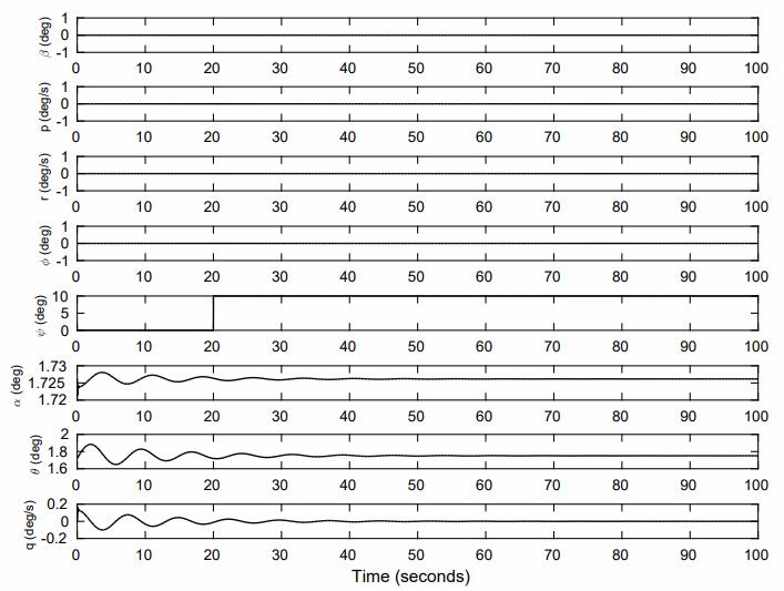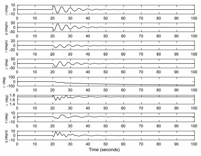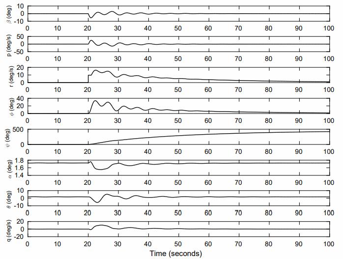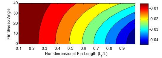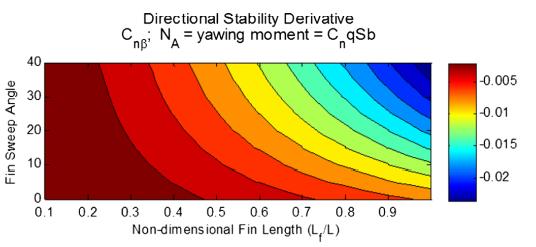 The value of the lift-curve slope of a stiff swept surface drops approximately in relation to cos(Λ).] This compensates for this drop in side-force caused by sideslip.[10] The flexible fin side-force stability derivativedropsaswell,butthefigurealsoindicatesthat at moderate sweep angles the adjustable fin is more effective, butasthefinissweptthepliablesurfaceisfar less effective. At increasing sweep angles, fin yielding coupled with fin sweep diminishes the efficiency of the fin.[6]Theyaw-momentflexiblederivativedemonstrates similar behaviour to the flexible side-force derivative. However, observe that the stiff stability component initially decreases (greater stability) but the curve has a local minimum at approximately 20 deg. As the fin is swept, the fin lift-curve slope reduces as the moment arm between the fin aerodynamic centre and the fuselage centre of gravity grows. Initially, the moment armincreaseishigherthanthelift-curveslopedrop,and thereforethefinoffersmoreyawstability.However,with bigger fin sweep angles, as sweep angle increases, fin bending coupling with fin sweep diminishes the efficiency of the fin. The hard surface yaw components for the larger, longer fin alter in a similar method to the smallerfinrigidyawderivatives.However,thecrossover (the point when the flexible surface becoming less efficient than the rigid surface) takes place at a lower sweep angle. Also, for high sweep angles, 35 to 45 degrees, the shorter fin’s flexible side force component magnitudeisbigger(moreadverse)thanthelargerfin’s. Based on the sweep angle the fin, this could be concern for vehicles dependent on tip-fins for directional stability
