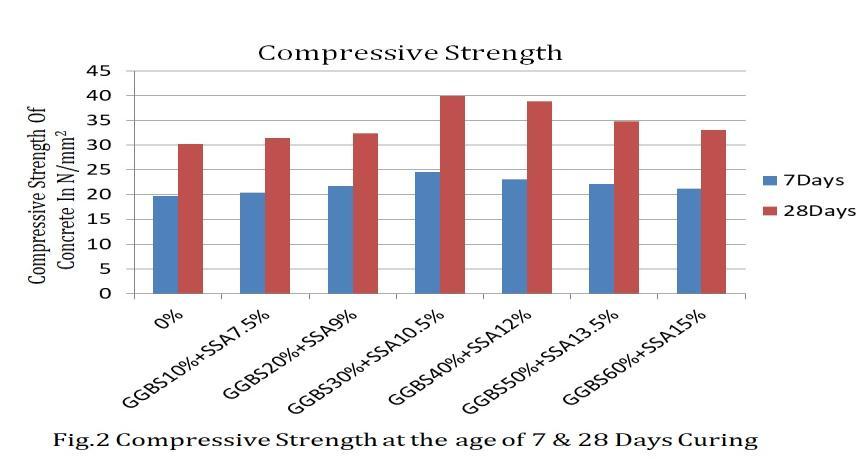 [5] Maximum compressive strength was obtained for the replacementofcementby30%GGBSandby10.5%SSA.