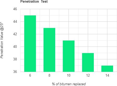 2) From table 3 it has concluded that penetration value decreases with the increase in plastic content which showsthatadditionofpolymerincreasesthehardness ofbitumen.