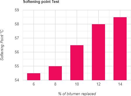 4) From table 5 it has concluded that softening point increases with the increase in plastic content which showslessbleedingduringsummer.