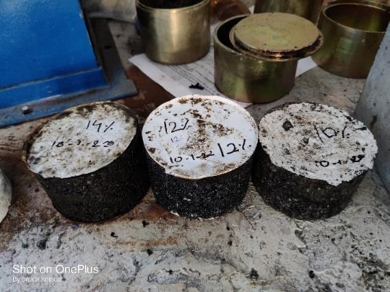 Aseriesofspecimenswithincreasingamountsofbitumen content are created using a similar process, with an incrementof2percent.