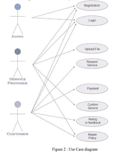The three actors in the proposed system are an administrator, a service provider, and a customer. For accessing and making changes to the website, the administrator only has to log in. The customer should firstcompletetheregistrationandloginprocessesbefore approaching the admin to use our services. A customer can upload a file that details the services if necessary. Oncetherequesthasbeenfulfilled,hecanforwarditfor