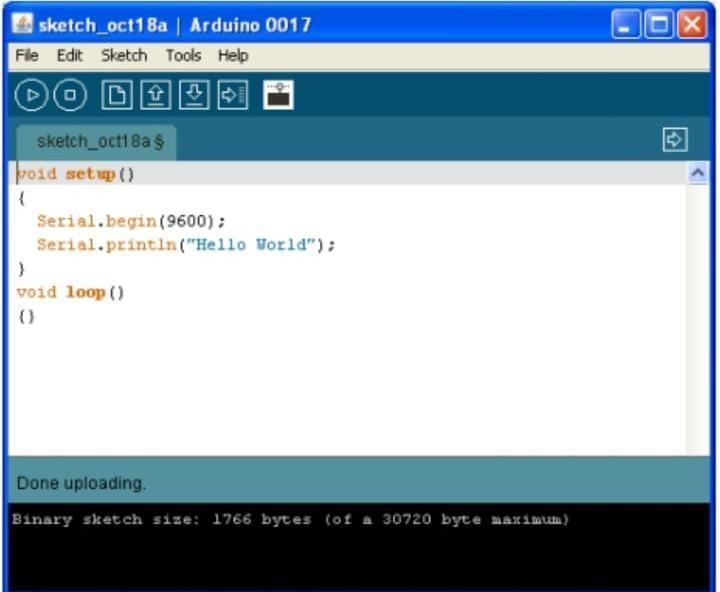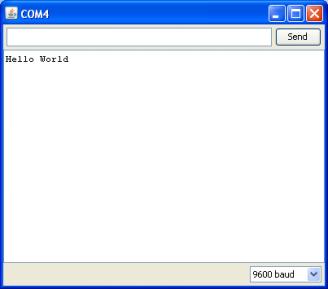 Click the Upload button or Ctrl-U to compile the program and load on the Arduino board. Click the Serial Monitor button. If all has gone well, the monitor window willshowyourmessageandlooksomethinglikethis.