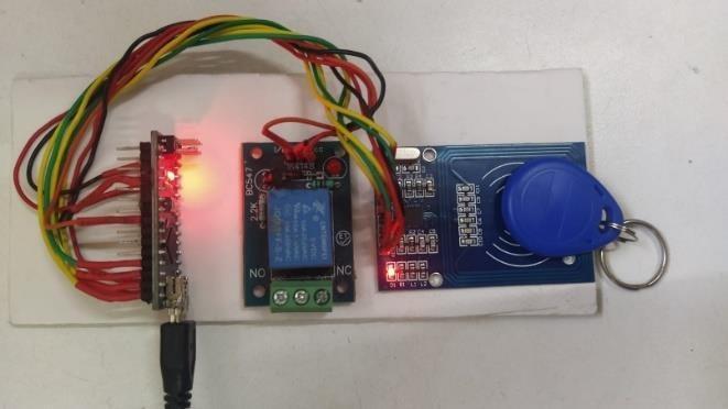 Theresultisthatthebikewillbeignitedonlywhenthe authorizedRFIDisscannedontheRFIDreader.Thedigital data of the authorized tags is stored in the RFID reader. WhenanypersonplacesauthorizedtagontheRFIDreader, thenthedata oftheplacedtagismatchedwiththe stored datainthemodule.IftheRFIDdataisfoundinthemodule, thenmatchconditionoccursandthemicrocontrollerignites thebikeotherwisebikewillnotstart.