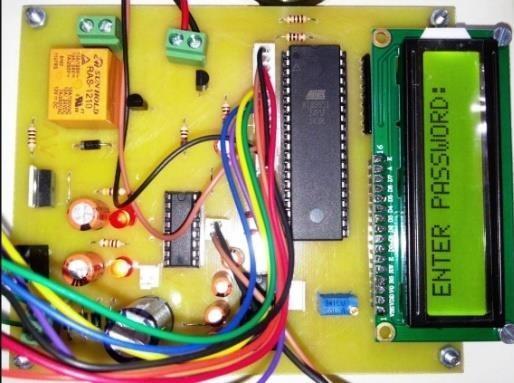 Whenever user inserts key in ignition lock, LCD displayshowsmessageas“EnterPassword:”.Userhasto enter password using Keypad provided with this electronicspaper.Iftheenteredpasswordiscorrectthen RelayandDCmotoristurnedon.