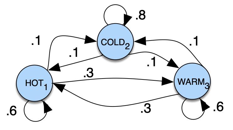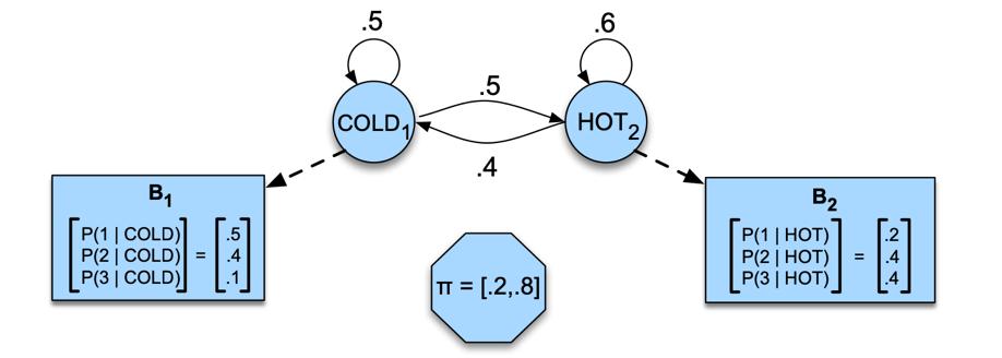Thetwohiddenstates(H andC)indicatehotandcoldweather,andtheobservations(drawnfromthealphabet O={1,2, 3})indicatethenumberoficecreamseatenbyTomonagivenday.