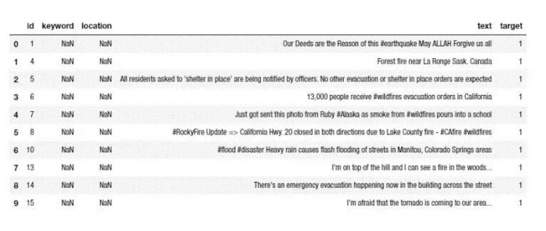 ⢠target:Outputthattellsifatweetisarealdisaster (1)ornot(0)