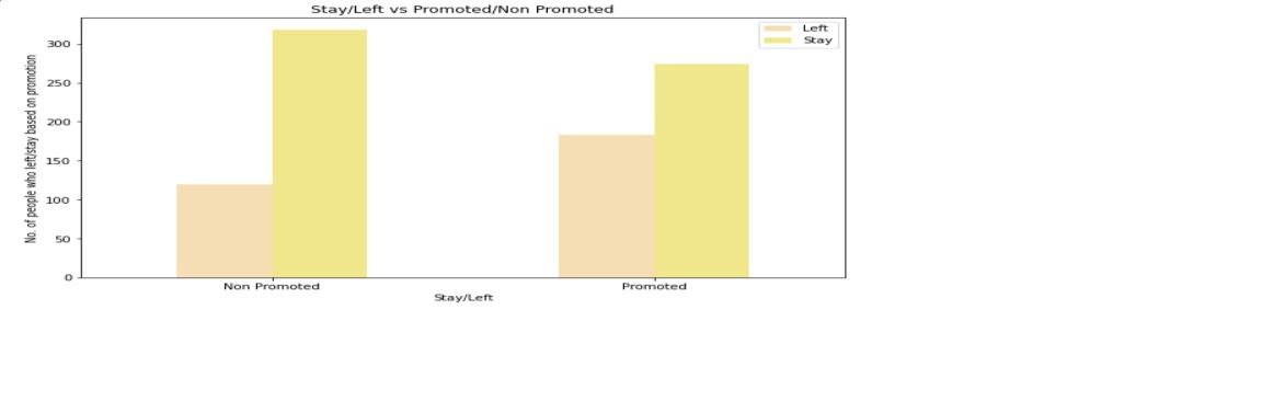 Thefirstgraphisarelationbetweenpromtionandattrition. Itisvisiblefromthegraphthatanemployeeismorelikelyto stayintheorganisationinthecasewheretherehasbeena promotion.