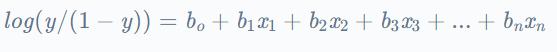 Belowistheequationthatrepresentstheequation forlogisticregression: where:y=dependentvariable x1,x2,x3…xn=independentvariables b0,b1,b2…bn=constants